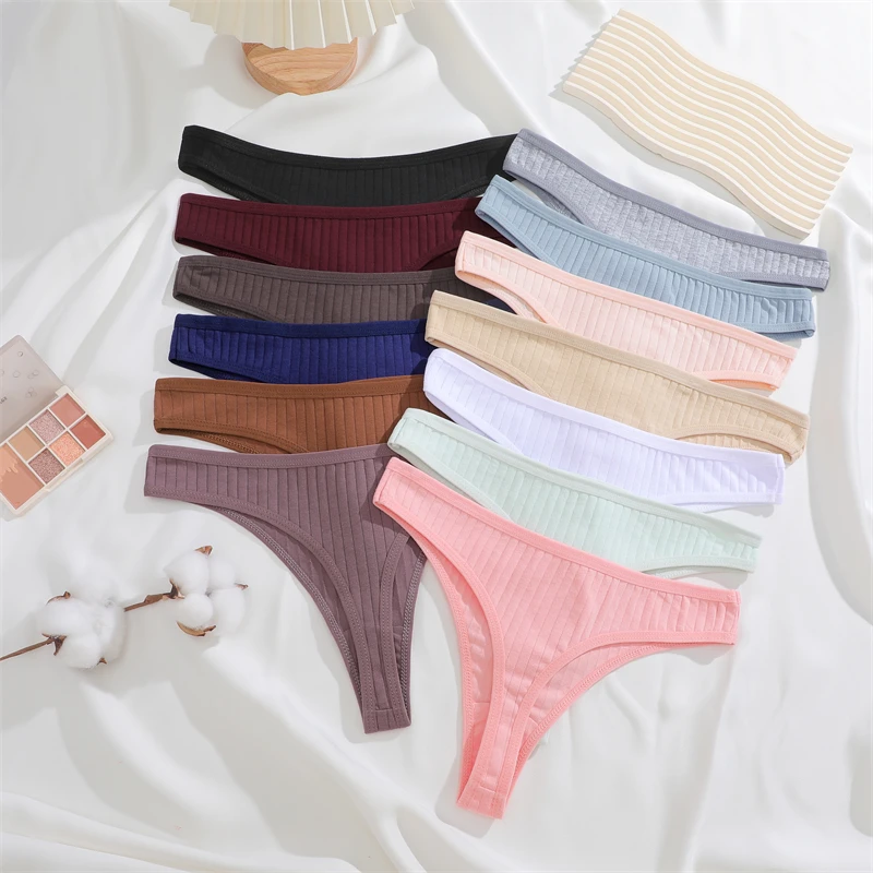 7 pçs feminino algodão listrado tangas roupa interior cintura baixa g-string calcinha sexy respirável cor sólida t-back casual biquíni lingerie